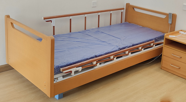 2. 材质:捷昌电机,铝合金护栏,固定脚,四折双面用防螨环保棕床垫,碳素钢床架,铝合金双护栏。