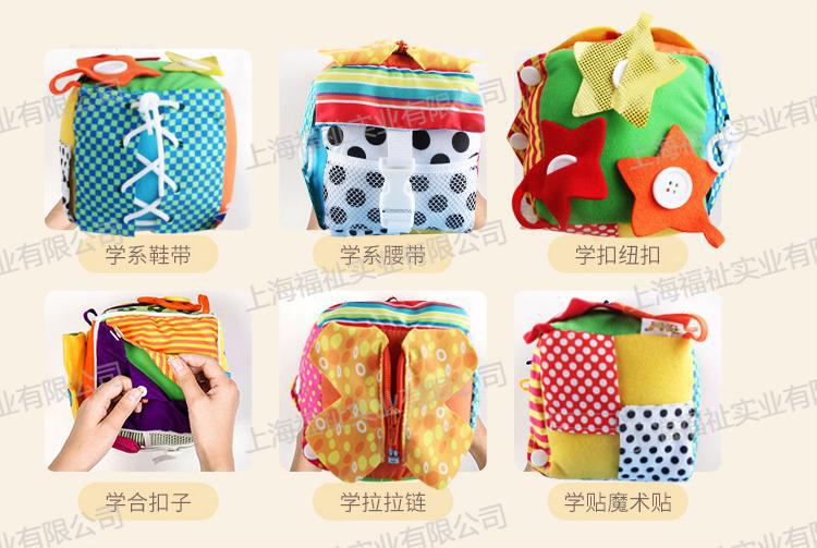 功能:锻炼手指的抓握能力和增强手腕的力量,帮助分辩不同的穿衣方式,帮助恢复自我认知。色彩鲜艳,布料柔软,手感好,对颜色的辨别很有帮助。玩具内部自带清脆悦耳的小铃铛铃铛,锻炼听力。